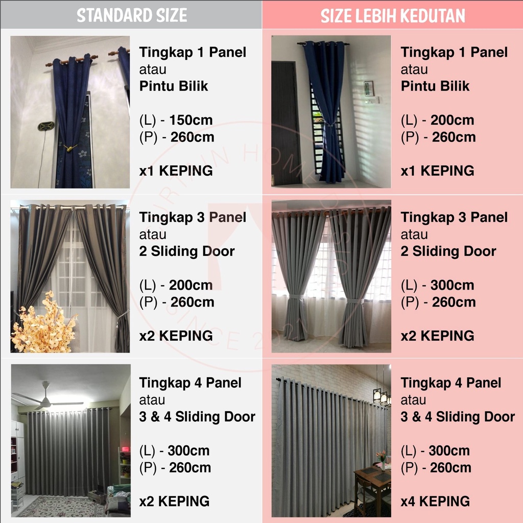Ready stock Dim Out Plain Minimalism Color French Pleat Langsir Siap Jahit Murah Curtain RM 2280 - RM 3280. RM 350 - RM 770. 24 KAIN TEBAL Langsir Curtain Semi Blackout Ready Stock In Malaysia Door Window CurtainLangsir pintu Langsir Tingkap.